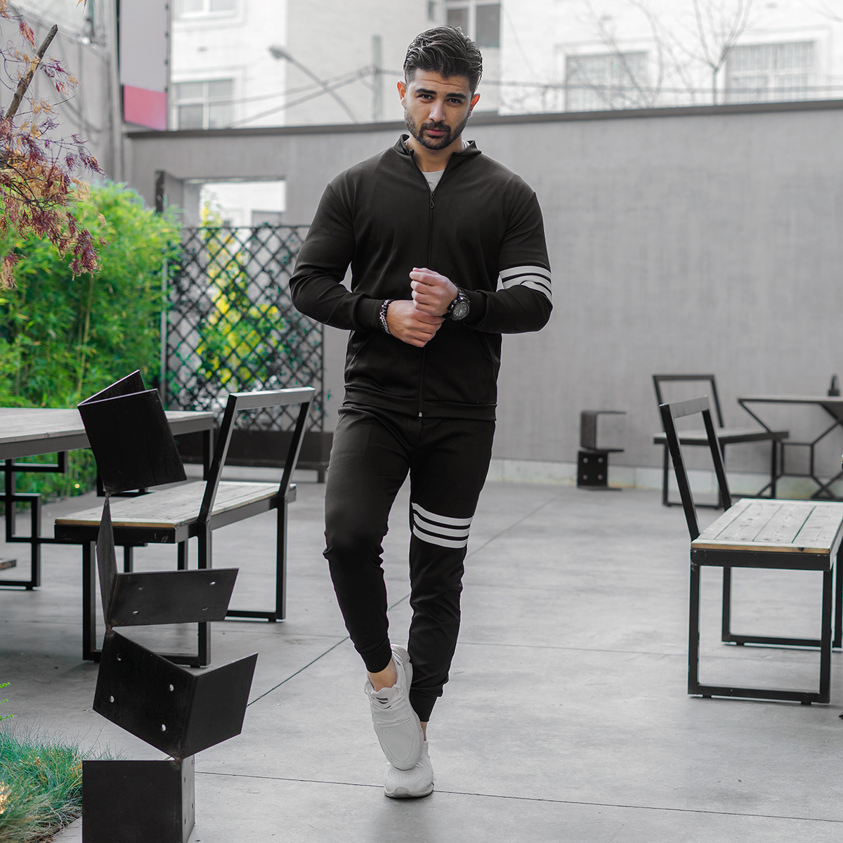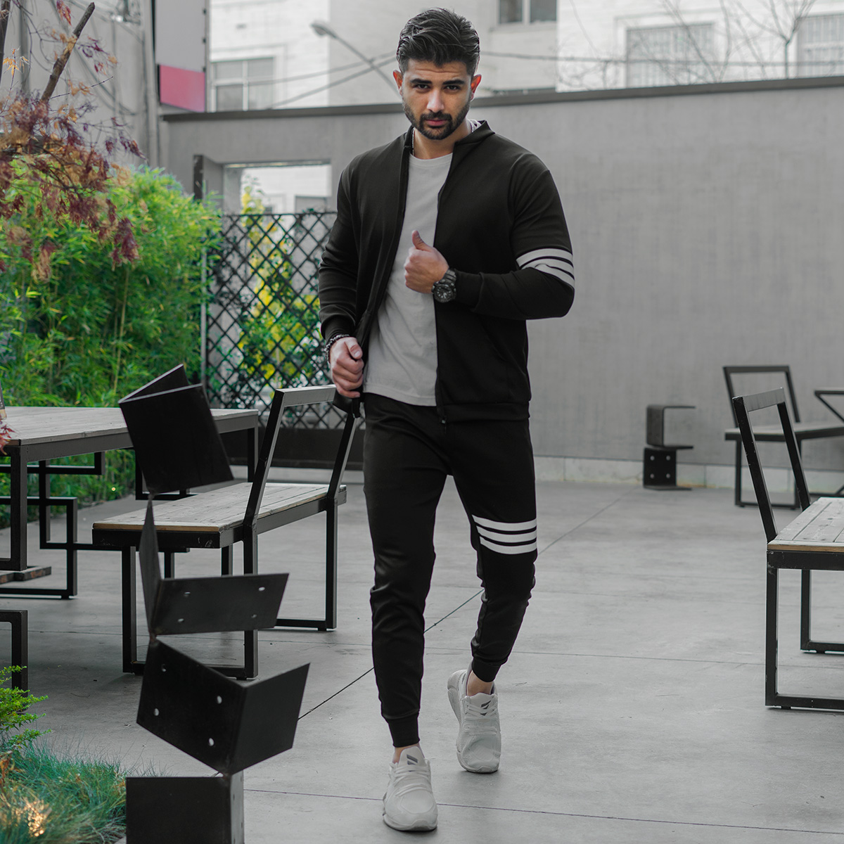 ست سوییشرت شلوار مردانه مشکی خط دار مدلTAKTA