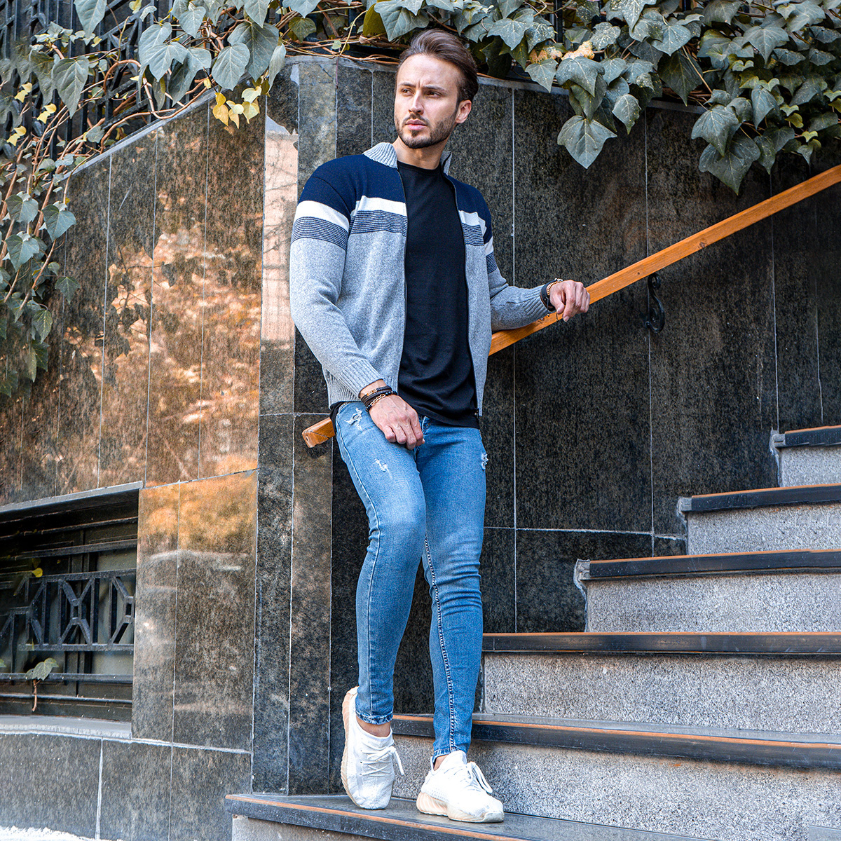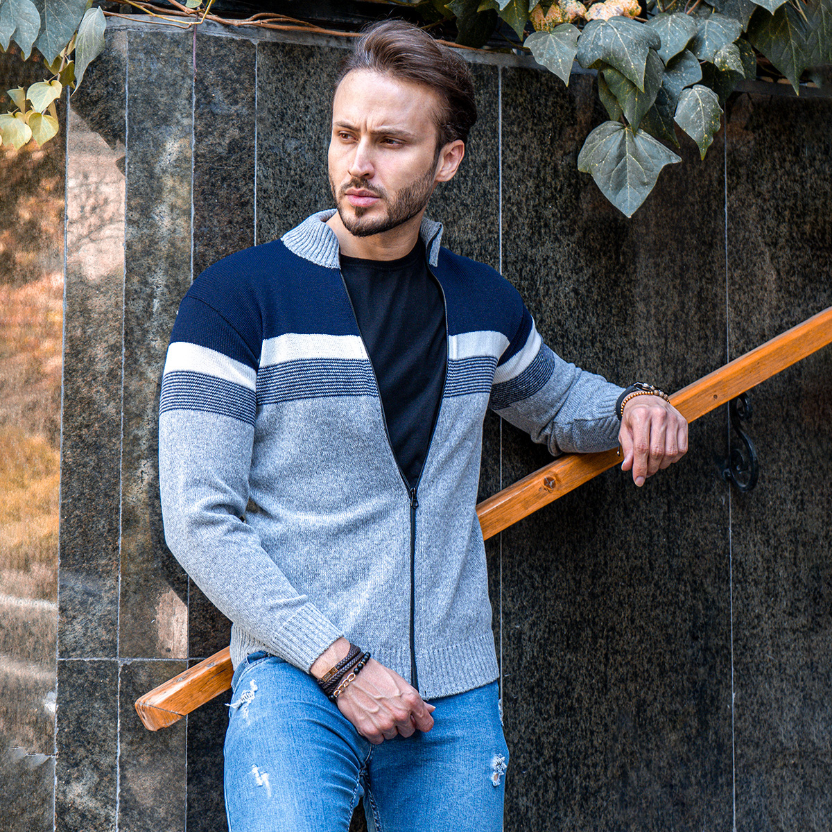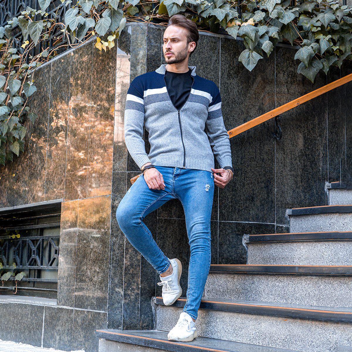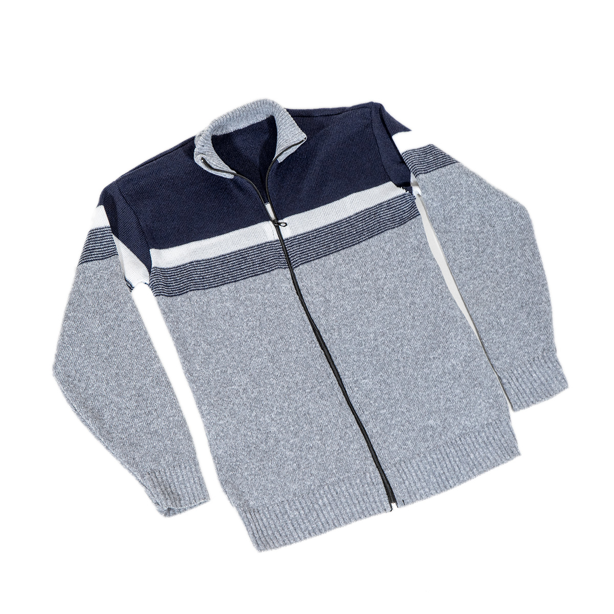 بافت مردانه زیپ دار دورنگ آبی طوسی مدل shadima