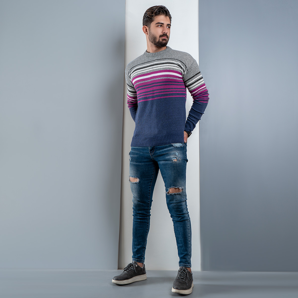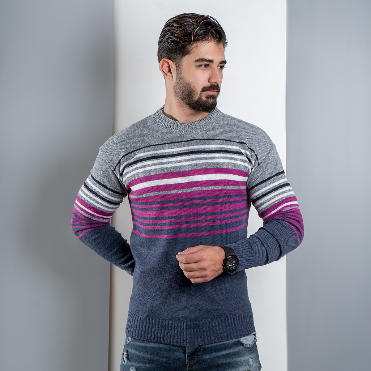 پلیور راه راه سرمه ای زرشکی(T) مردانه مدل otil