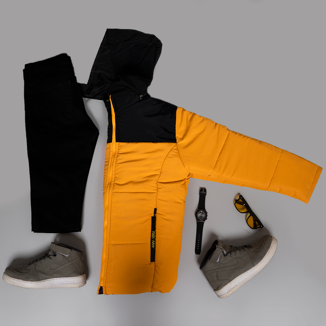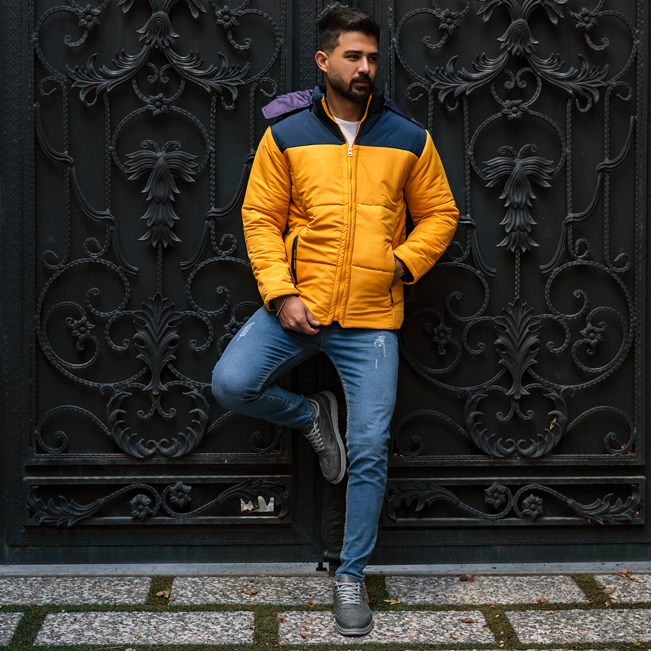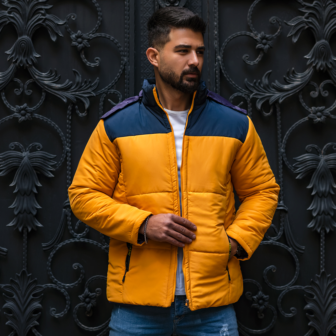 کاپشن دورنگ سرمه ای زرد مردانه مدلAidin