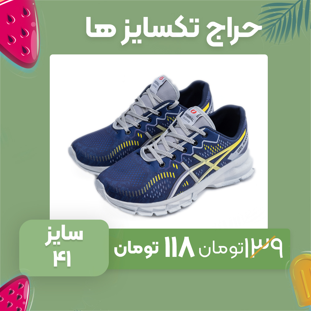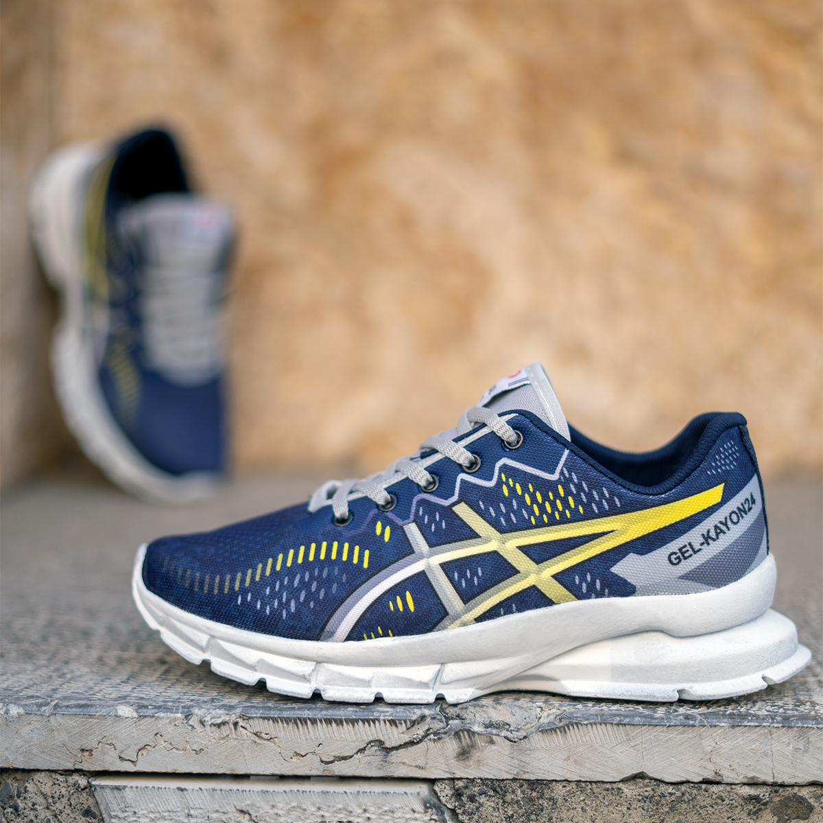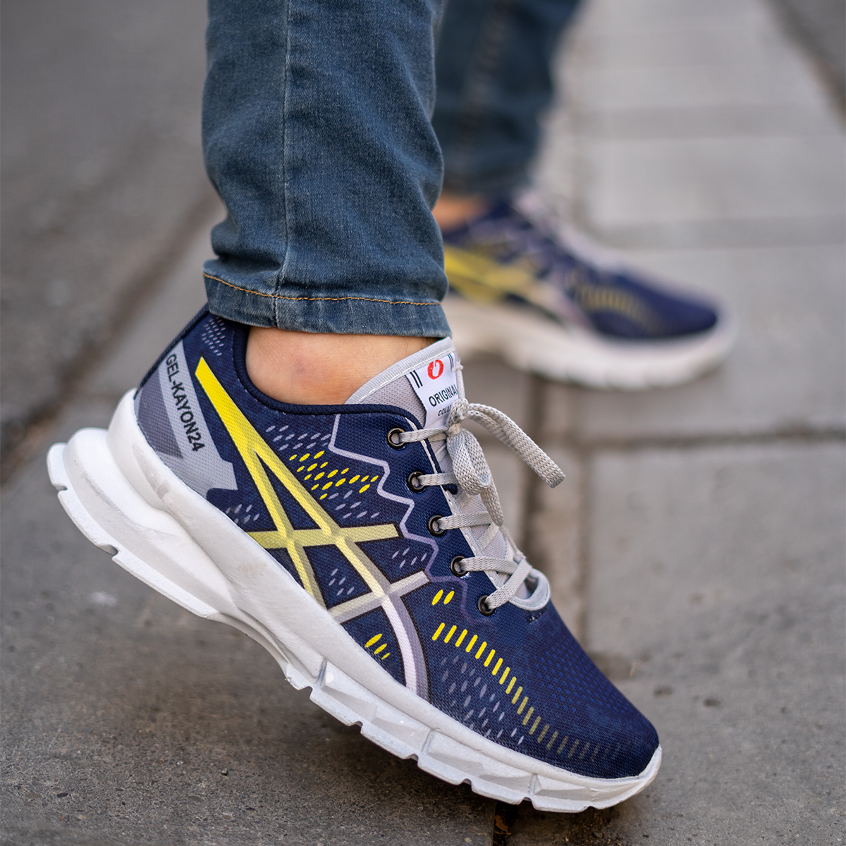 کفش مردانه اسیکس سرمه ای زرد مدل dahak