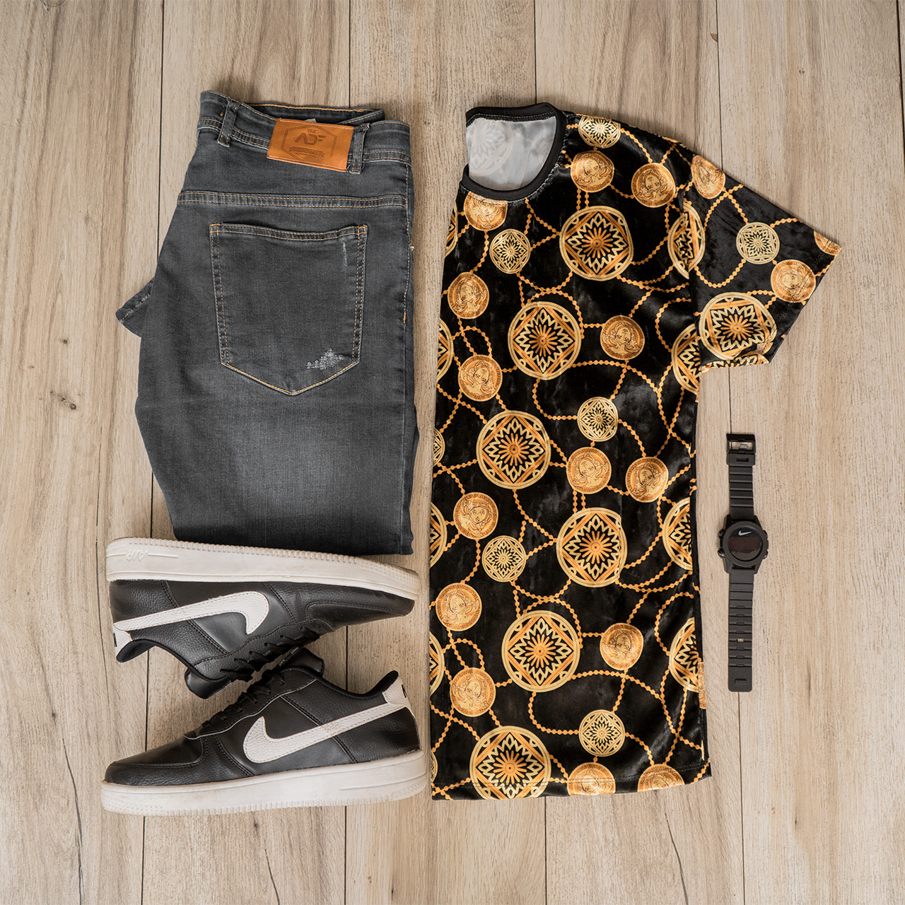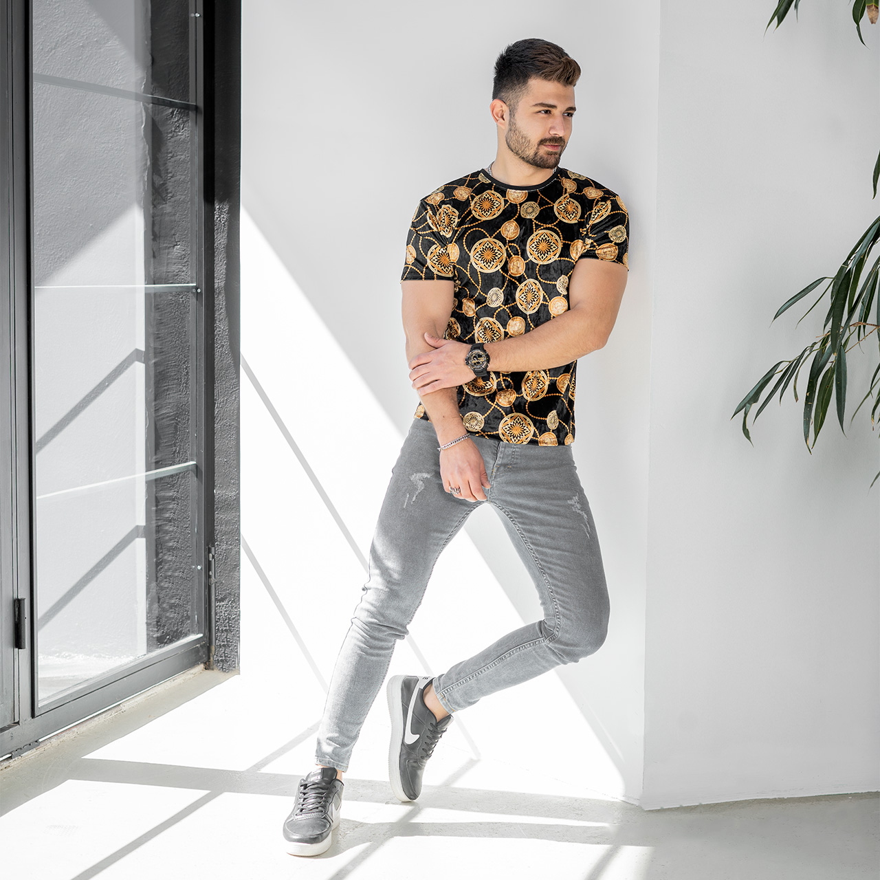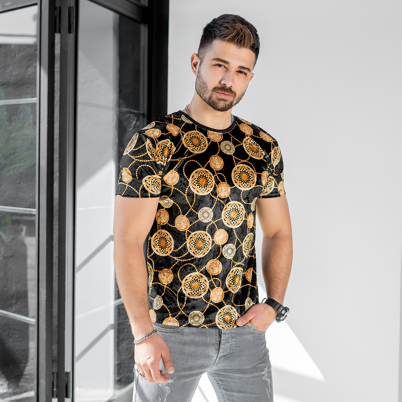 تیشرت مخمل مشکی طلایی مردانه مدل golden