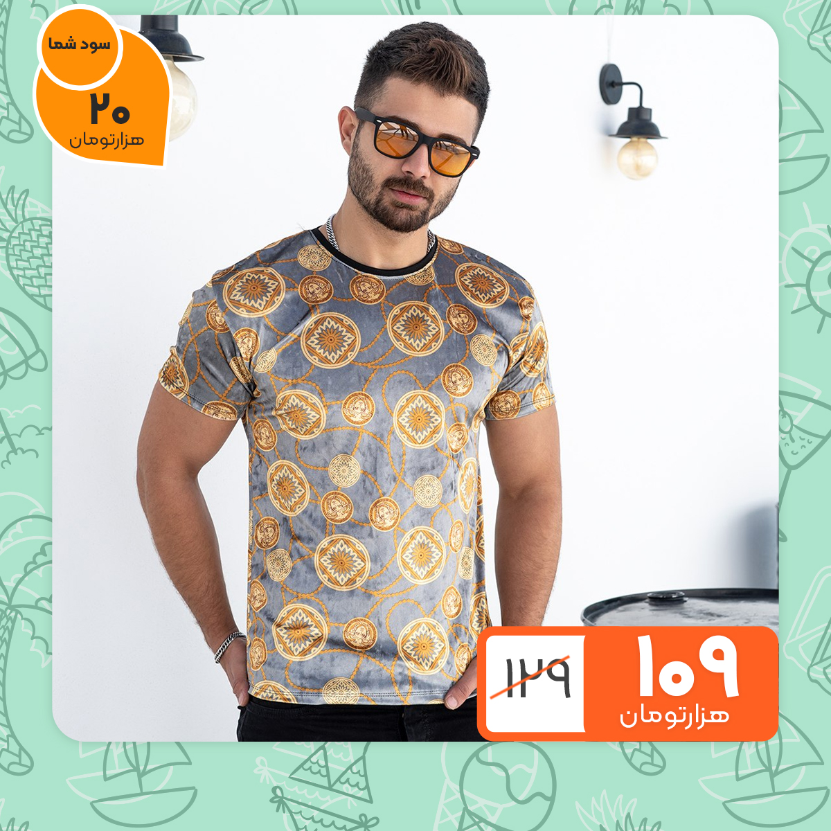 تیشرت مخمل طوسی طلایی مردانه مدل golden