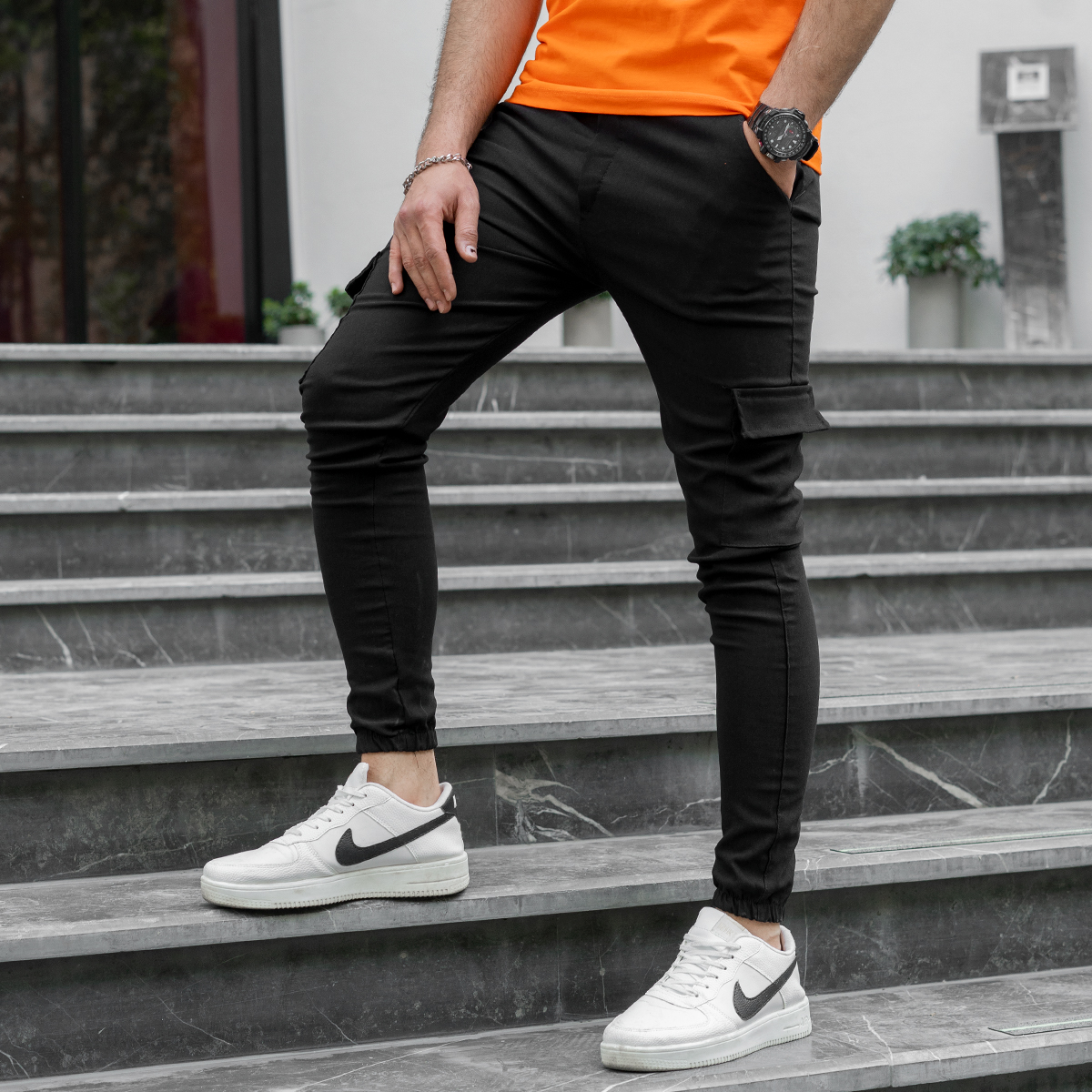 شلوار اسلش بنددار مشکی چهارجیب مدل 68