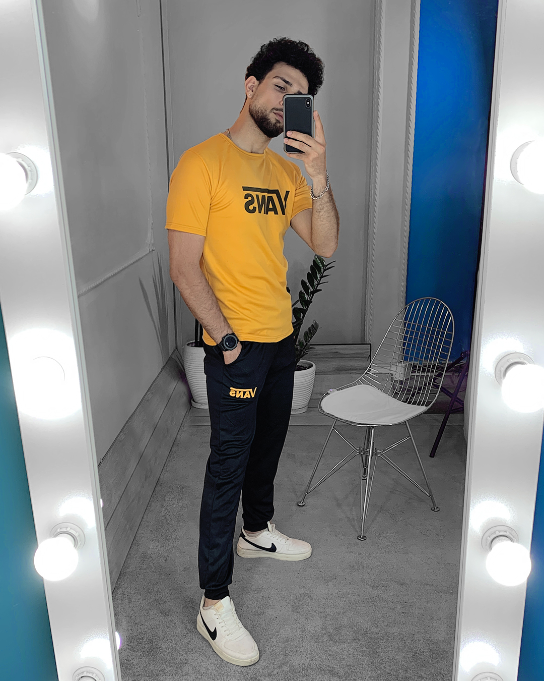 ست تیشرت شلوار مشکی زرد Vans مردانه مدل N200