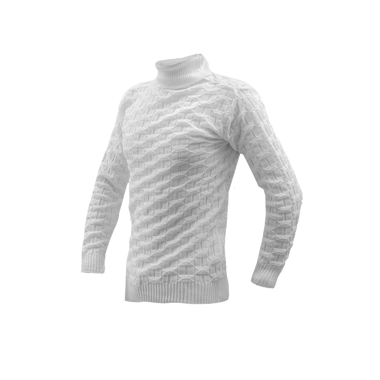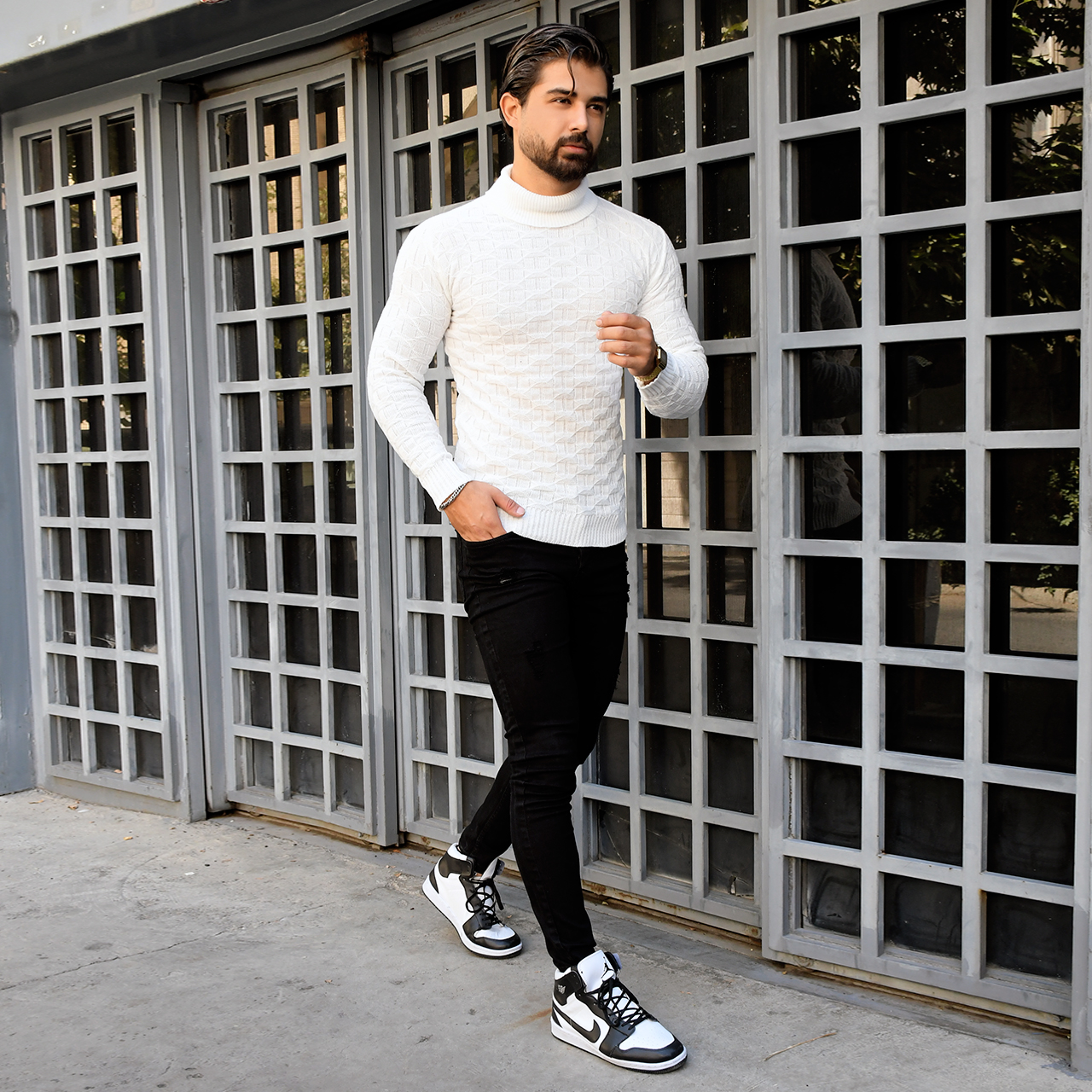 پلیور یقه اسکی سفید طرح لوزی مردانه مدلG10