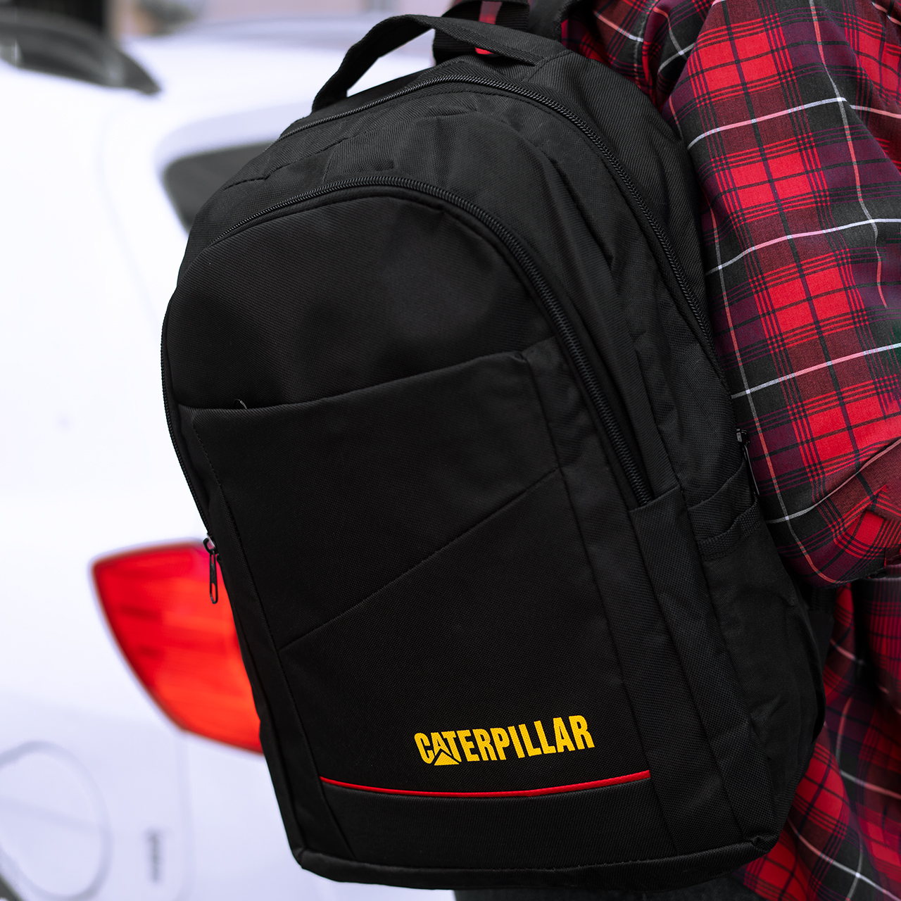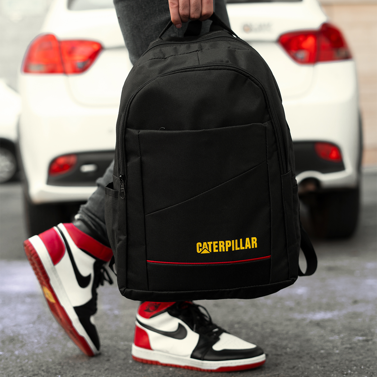 دارای یک محفظه بزرگ و دو جیب کوچکتر روی کیف و دو جیب کناره های کیف
