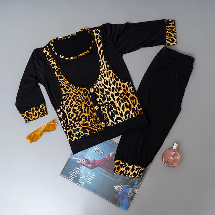 ست تیشرت شلوارک زنانه طرح پلنگی مدل Parmis