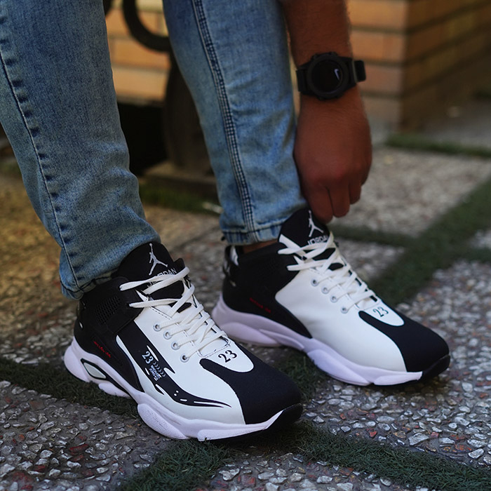 کفش ورزشی مردانه jordan سفید مشکی مدل 23