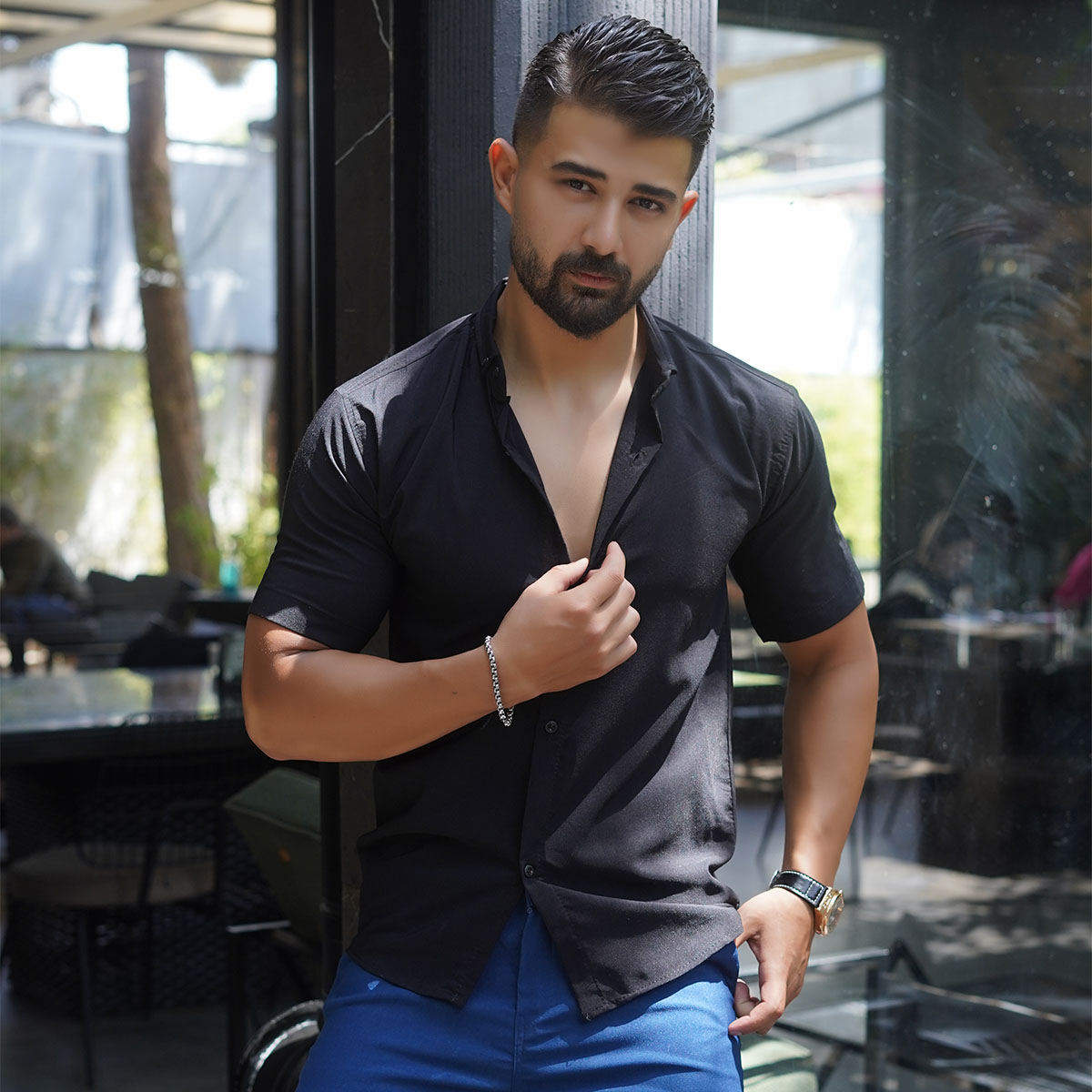 پیراهن آستین کوتاه مشکی مردانه مدل Diesel