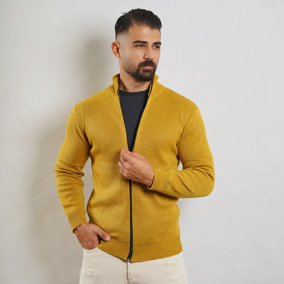 سوییشرت مردانه خردلی مدل Meysam