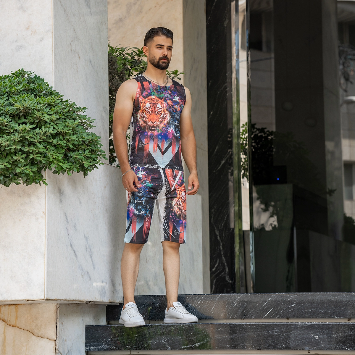 ست رکابی شلوارک مردانه Nike طرح ببر