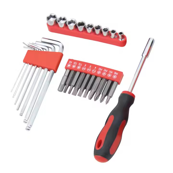 مجموعه ی فوق شامل یک پیچ گوشتی تی شکل به طول 16 سانتی متر, 9 سری بکس و چند سری پیچ گوشتی می باشد .