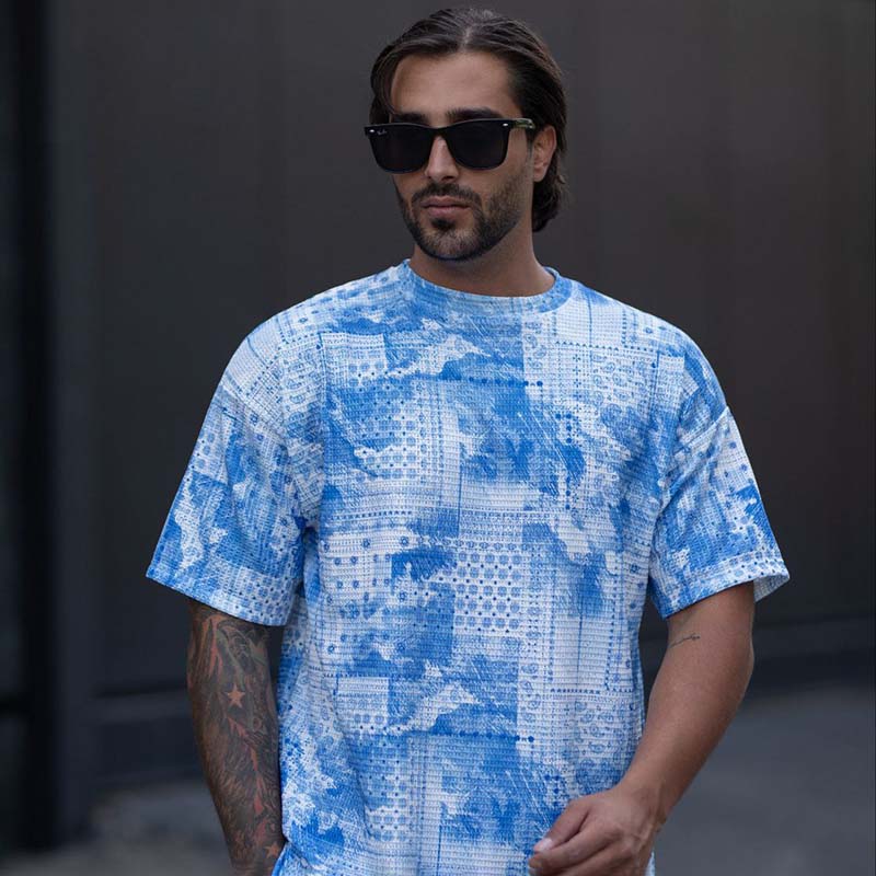 تیشرت مراکشی چاپی آبی مردانه مدل Ramin