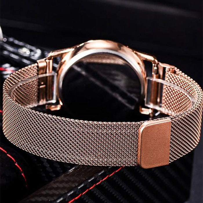 ساعت LED بند فلزی رزگلد مدل Ronas