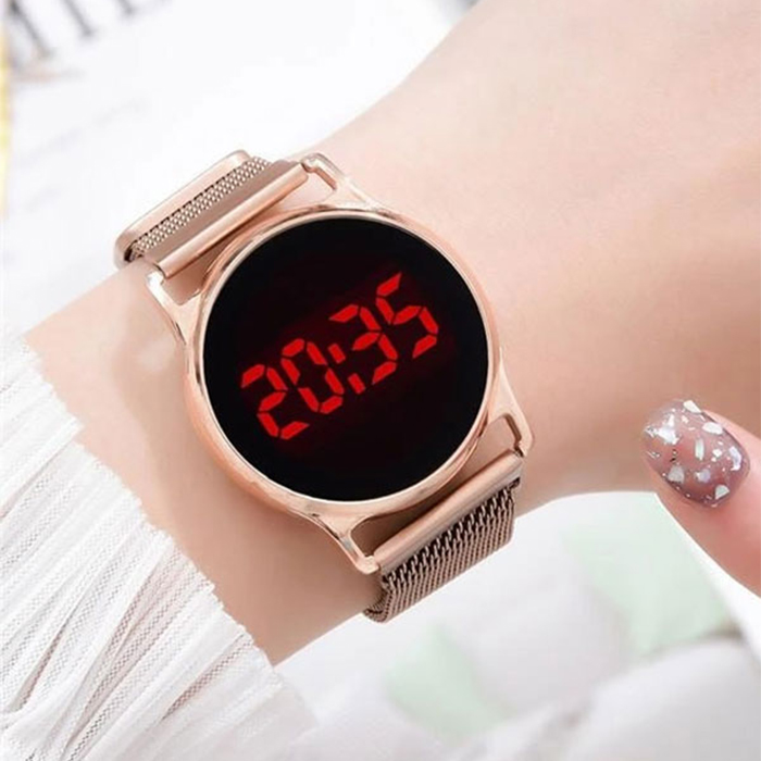 ساعت LED بند فلزي رزگلد مدل Ronas