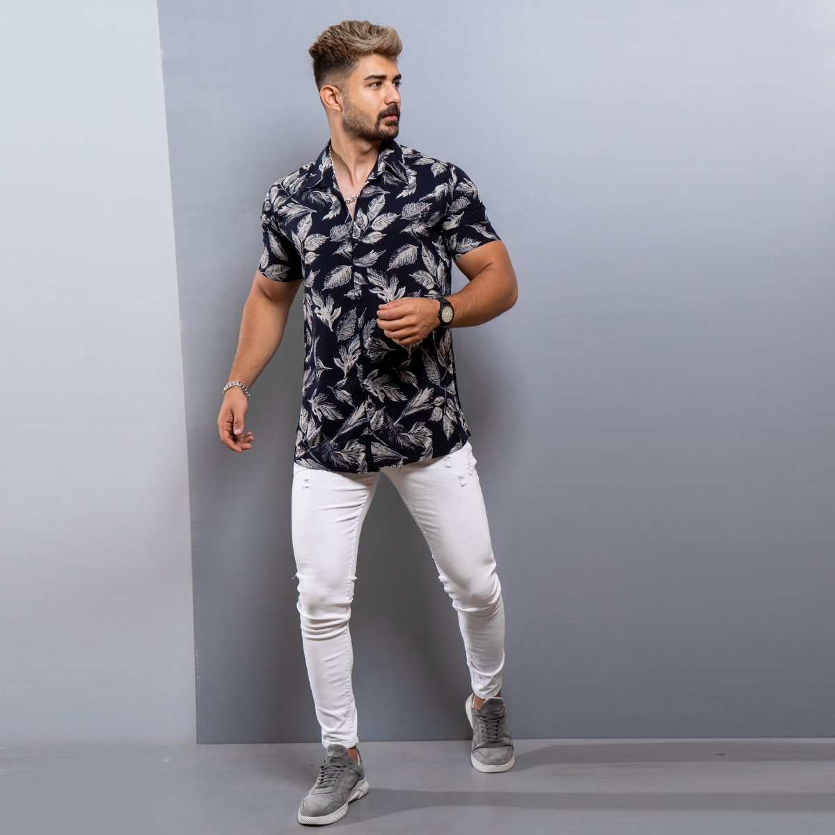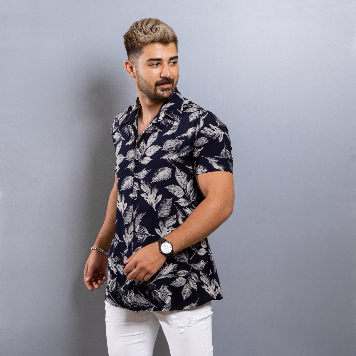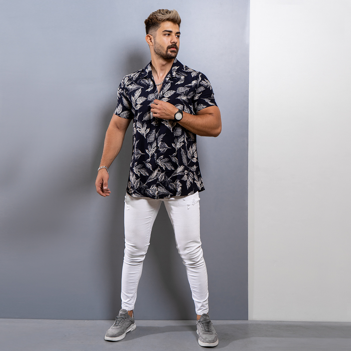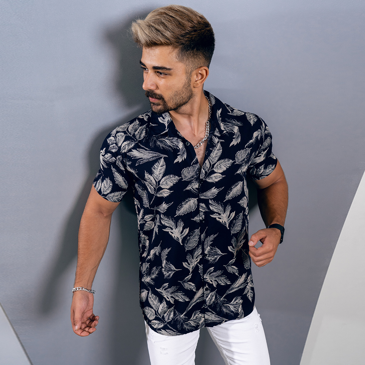 پیراهن هاوایی مردانه سرمه ای مدل Tinkal-
