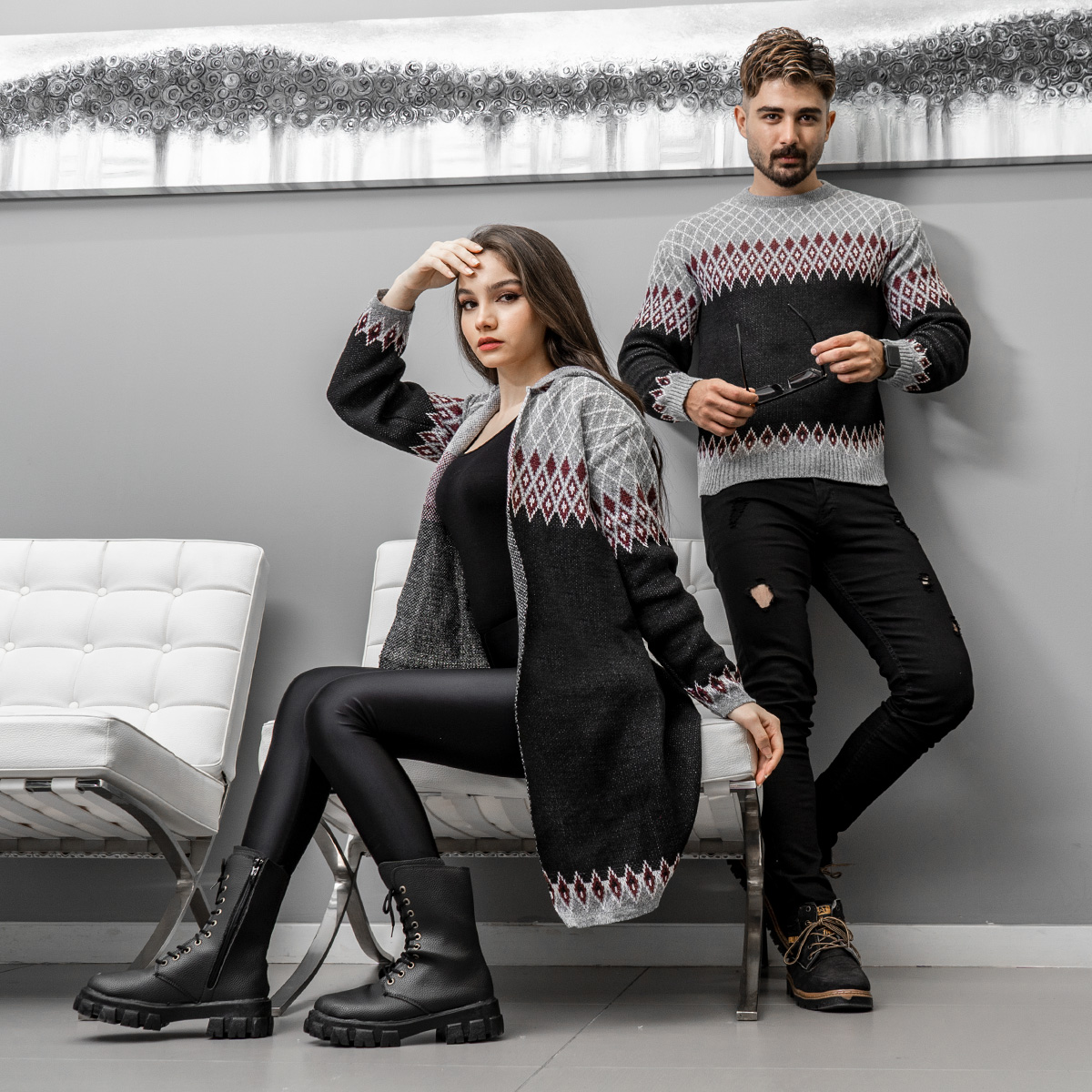 بسیاری از زوج های جوان شیک پوش و خوش سلیقه دوست دارند لباس های ست بپوشند. ست بافت طوسی صورتی مدل Shibaبا طرح و رنگ زیبا می تواند بهترین انتخاب برای زوج های عاشق باشد.